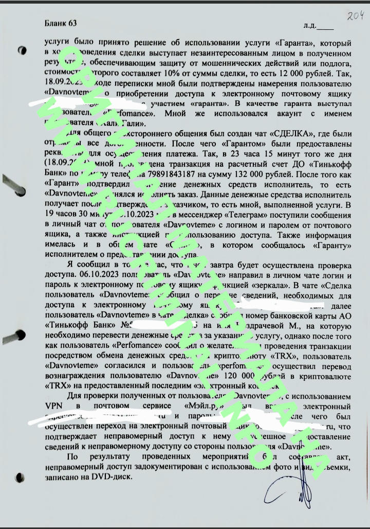 As the VChK-OGPU found out, the criminal case began in 2023, when the Main Investigative Directorate of the Investigative Committee of Russia for Moscow brought active police officers involved in "punching". From this large criminal case, material on a test purchase carried out by BSTM operative Kerimov was separated into a separate proceeding, during which access to the email of his voluntary civilian "assistant" was purchased via Telegram. It is unknown why the material was separated into a separate proceeding, although already at the initial stage the operatives accompanying the criminal case knew that the production of counterfeit decrees and the trade in information of VK users via Telegram were carried out by the same police officers who had already been brought to justice.