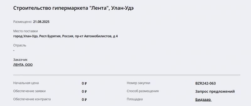 21 августа компания «Лента» разместила тендер на строительство гипермаркета в Улан-Удэ на проспекте Автомобилистов, дом 4. Спустя месяц врио министра транспорта Бурятии Владимир Кружихин развернул кампанию по переносу городского автовокзала на новый адрес: проспект Автомобилистов, 4А, в непосредственной близости от торгового центра Capital Mall и будущего гипермаркета.