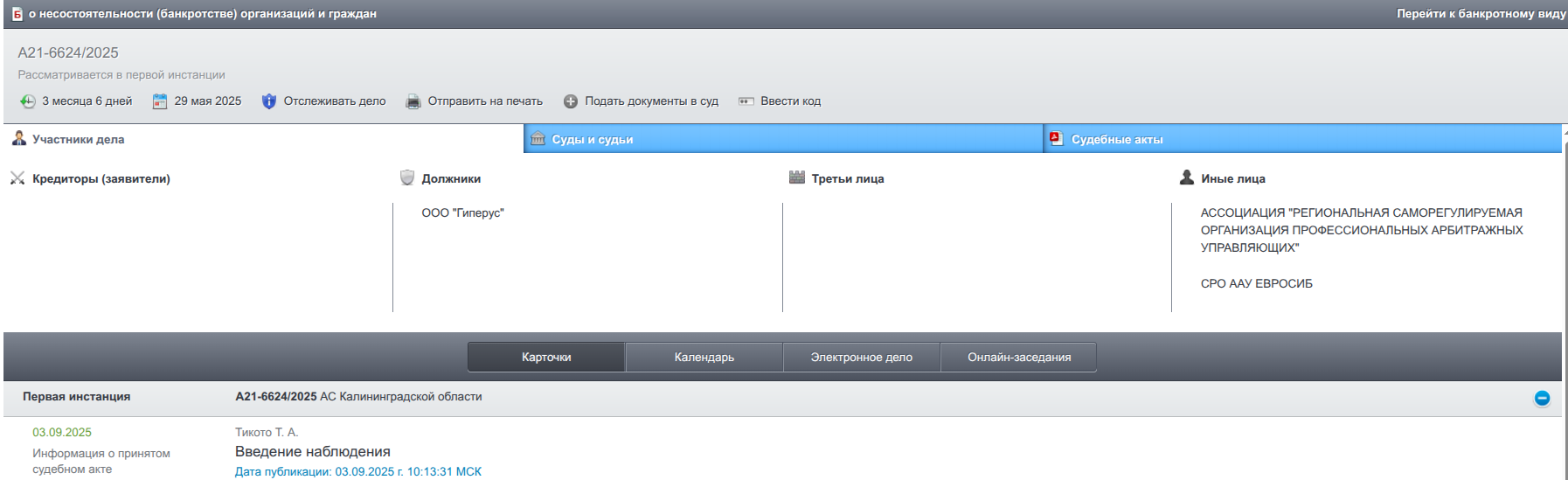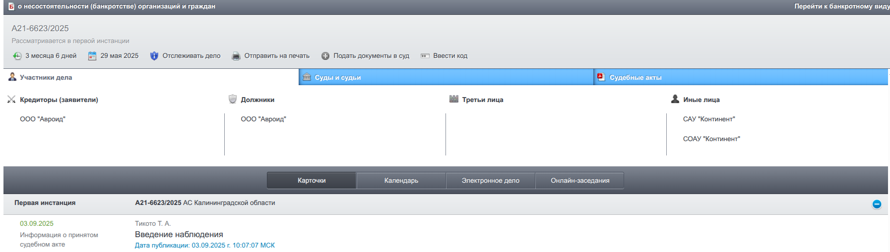 3 сентября 2025 года калининградский арбитраж ввел первый этап процедуры несостоятельности в отношении ООО «Авроид» и ООО «Гиперус» - наблюдение, а с учетом, что инициаторами выступили сами компании, это то самое дно, с которого им уже не подняться.