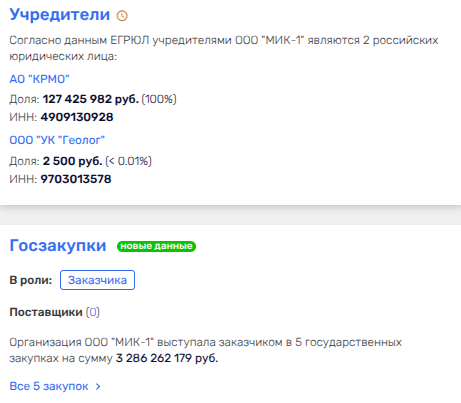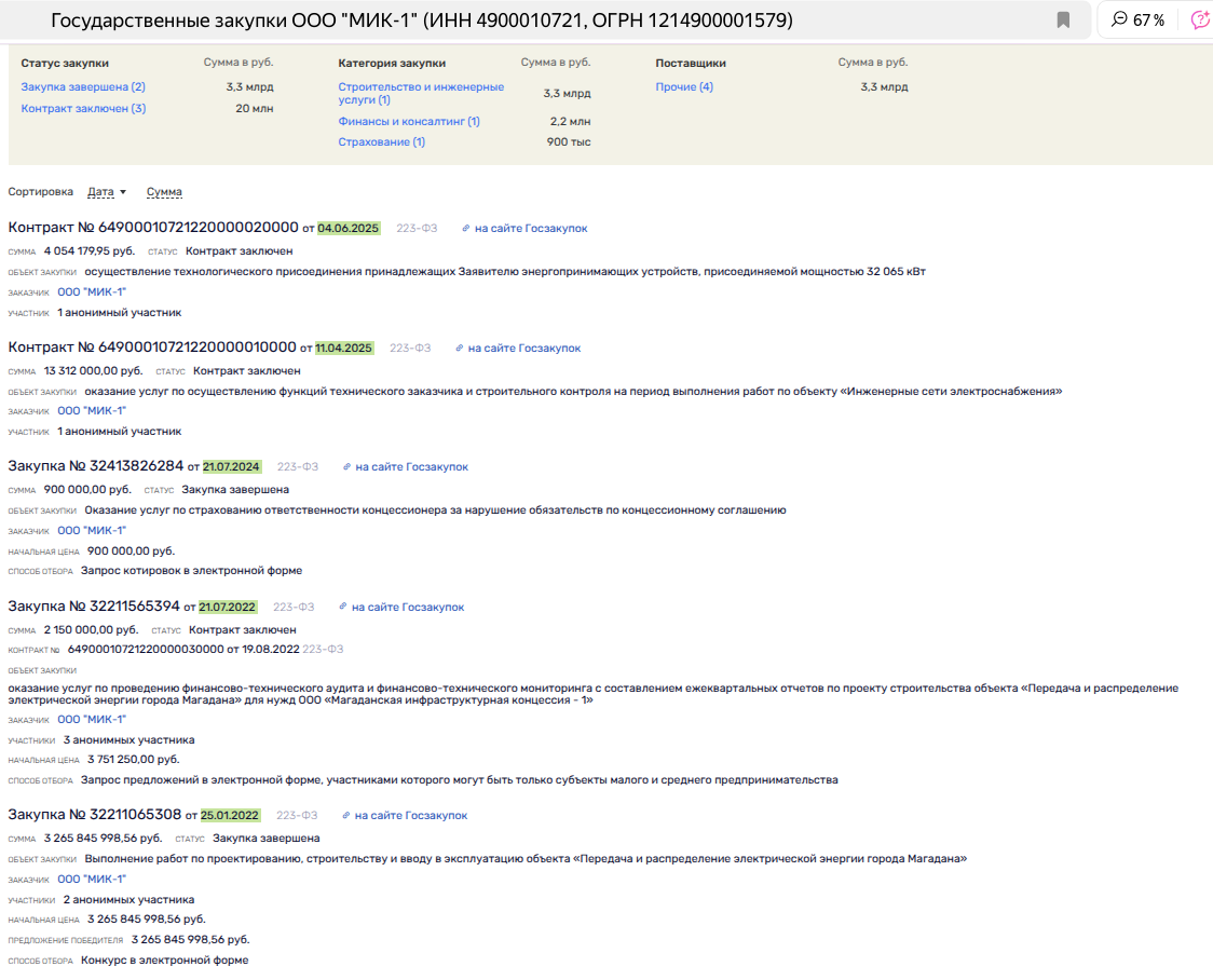 Занятно: через ООО «Магаданская инфраструктурная концессия-1» как поставщика с момента создания в 2021 году успели прогнать свыше 3,2 млрд рублей. Во всех случаях участники не раскрывались и шли как анонимные.