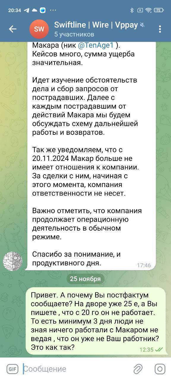 История одного из пострадавших показывает, как действует команда скамеров. Москаленко сначала берет на себя обязательства закрыть долг, но на следующий день отказывается. На сцену выходит некто Аслан (ник @kh_khalif) и агрессивно сваливает все на беззащитного Макара.