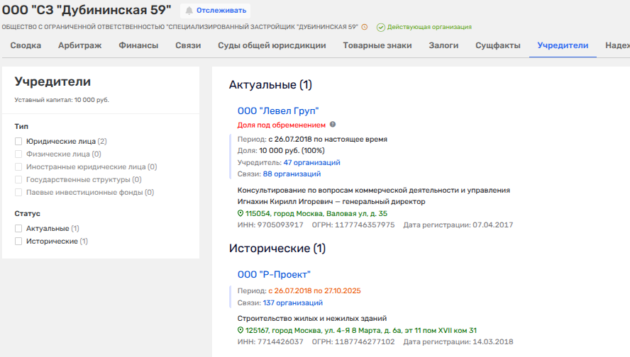 Директором ООО СЗ «Дубининская 59» является Елена Воронина, которая руководит и владеет долей также и в ООО «Левел Дистрикт». Ее партнером по фирме является Кирилл Игнахин, генеральный директор Level Group, но 1 октября 2025 года из фирмы вышли Мария Пак и Валентина Становова. Обе дамы близки к Павлу Те и не раз фигурировали как его бизнес-партнеры. А Становова так и вовсе фигурирует как гендиректор Capital Group.