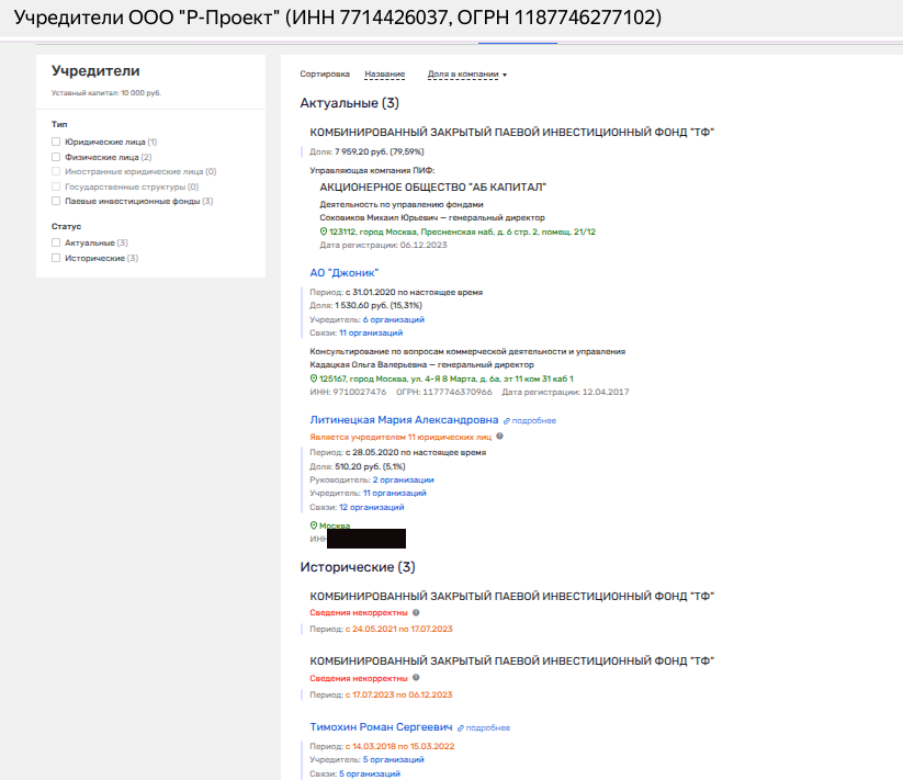 Вышло же из проекта спустя семь лет после вхождения ООО «Р-Проект», которое до 2022 года принадлежало лично Роману Тимохину. Потом уши бенефициара прикрыли ЗПИФ, которым управляет УК, некогда созданная владельцами МР Групп, в числе которых и сам Тимохин.