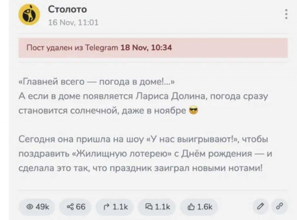 В итоге попытка «Столото» привлечь внимание известной артистки обернулась репутационным ударом, который уже невозможно скрыть удаленными постами. Скандал стал еще одним напоминанием о том, что в сфере недвижимости ставки всегда высоки - и касаются не только денег, но и судеб, которые не выигрываются по счастливому билету.