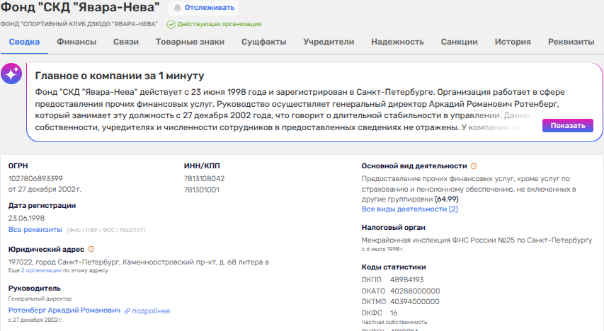 Но и это не весь букет друзей-олигархов. Катков был соучредителем Фонда спортивного клуба «Явара-Нева» вместе с Тимченко, а Аркадий Ротенберг стал его президентом.
