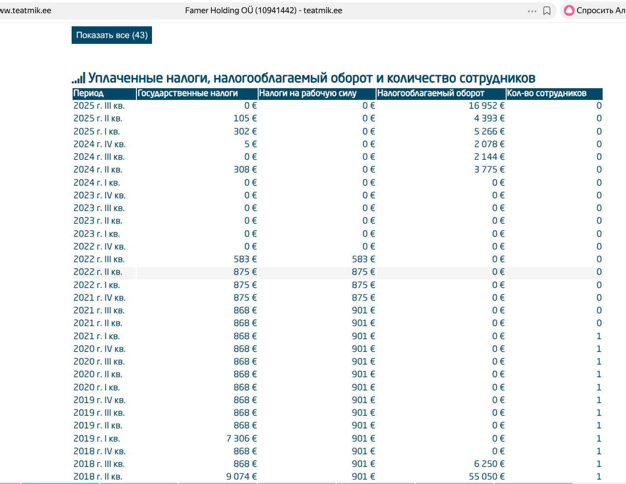 Gleb Andreevich Katkov так и остался владельцем сразу трех компаний в Эстонии - Famer Holding OÜ, Termak Real Estate OÜ и Noorus OÜ. Именно Глеб Катков с 23.09.2025 года является пайщиком Famer Holding OÜ. Его доля оценивается 7 977 573 евро.
