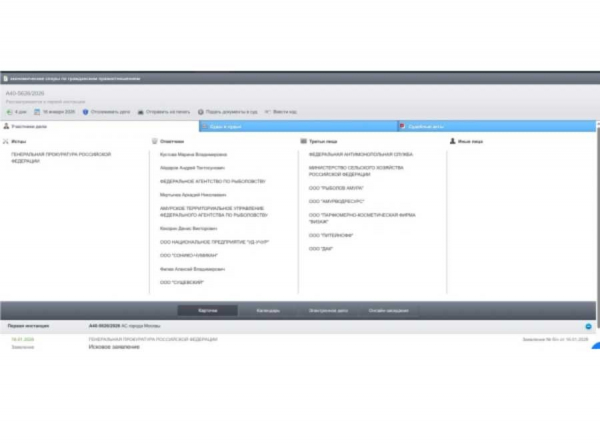 В числе соответчиков — Росрыболовство, а также несколько компаний рыбопромыслового профиля: ООО НП «Уд-Учур», ООО «Сонико-Чумикан», ООО «Сущевский» и ряд физических лиц. Все эти структуры так или иначе связаны с Мкртычевым и его партнёрами. В процесс также привлечены ФАС, Минсельхоз и аффилированные юрлица. Классический набор для дел, где на кону — распределение квот, доступ к биоресурсам и возможное изъятие активов в пользу государства.
