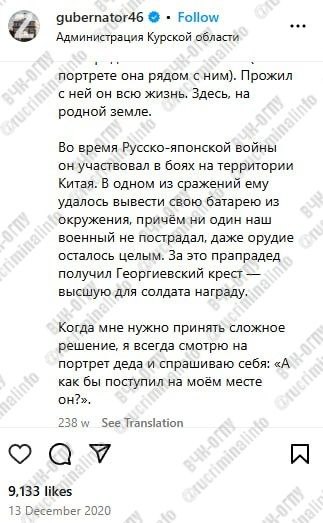 «Когда мне нужно принять сложное решение, я всегда смотрю на портрет деда и спрашиваю себя: “А как бы поступил на моем месте он?”», — писал Роман Старовойт (на тот момент губернатор Курской области) 13 декабря 2020 года. 7 июля 2025 года в Одинцовском городском округе было найдено тело чиновника с огнестрельным ранением. За несколько часов до этого президент РФ Владимир Путин отправил Старовойта в отставку с поста министра транспорта. Приоритетная на данный момент версия следствия – самоубийство.