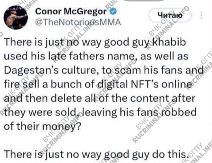 "Is it possible that ‘good guy’ Khabib used his late father’s name, as well as Dagestani culture, to deceive his fans and quickly sell off a bunch of digital NFTs online, and then delete all the content after they were sold, leaving the fans without money?