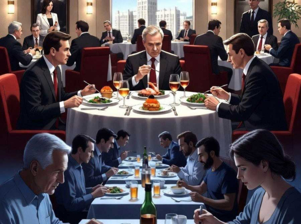 Разрыв между элитой и рядовыми чиновниками и муниципалами виден невооружённым глазом: сверху — роскошь и излишества, снизу — крошки и ярость. Это не просто бизнес и питание — это символ системного неравенства и цинизма внутри самой власти Московской области.