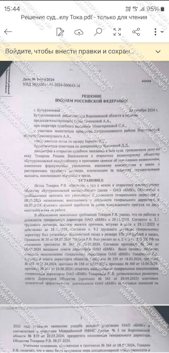 1. Бутурлиновский мелькомбинат — объём переработки снизился в 3 раза, сокращение работников, целенаправленное доведение до банкротства с целью продажи под заказчика;
