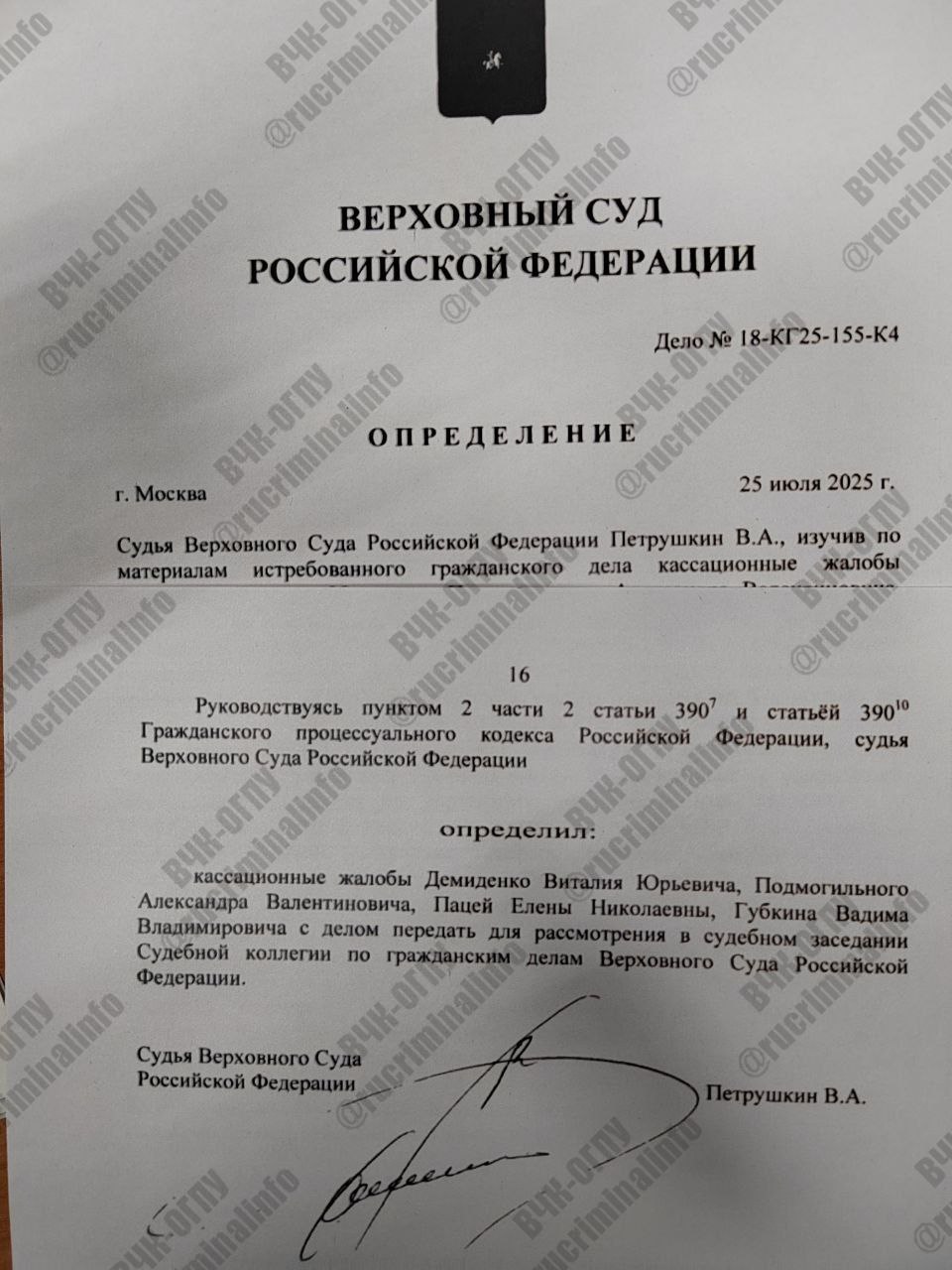 Подача жалоб на решения судов в «обычном порядке» к результату не привели, все жалобы были возвращены Верховным судом как необоснованные.
