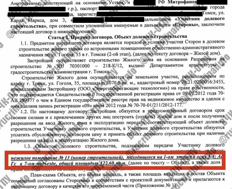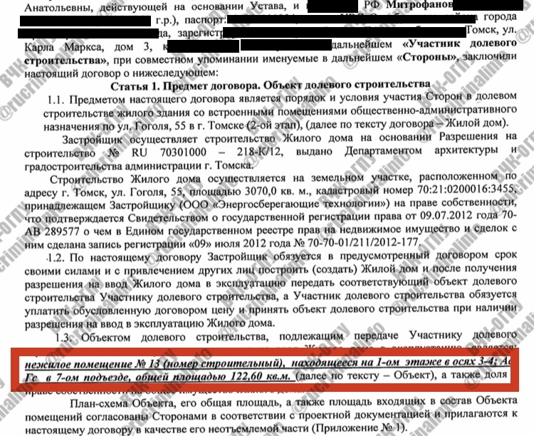 Зачем же Андрею Муравьеву надо было делать такие «инвестиции» в генерала? В том числе, для того, чтобы расставленные Игорем Митрофановым на ключевые посты в мэрии Томска люди помогали Муравьеву совершать преступления при реализации жилищных проектов, в частности для получения муниципальной земли без оплаты, по Сибирской, 9а и Шпальному, 3 в городе Томске.