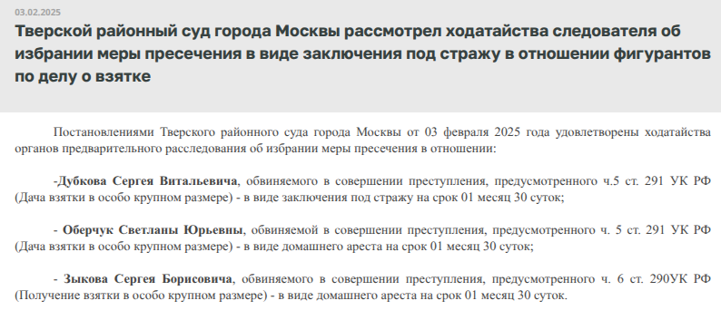 По делу о взятке также проходят две пешки из рекламной империи Мирзоянов (читай - Керимова) Russ Outdoor - Светлана Оберчук (под домашним арестом) и Сергей Дубков (под стражей), а также глава отдела рекламы МКУ «Управление по обеспечению деятельности органов местного самоуправления» Сергей Зыков (под домашним арестом). Последнему якобы также заносили, а тот уже по цепочке делился с Ионовым. При этом обратите внимание, сам чиновник не в СИЗО, а туда отправился весьма приближенный к Мирзояну и делишкам Russ Outdoor Дубков.