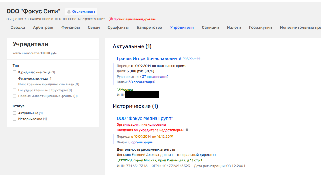 «Фокус Сити» ныне банкрот, но до того через нее прогнали госконтрактов на 10 млн рублей.