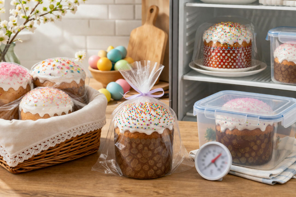 Если вы используете классические металлические или современные силиконовые формы, куличи нужно вынуть сразу после остывания. Чтобы они не зачерствели к утру, оберните угощения пергаментной бумагой и перевяжите нарядной лентой. Это не только сохранит мягкость, но и украсит их.