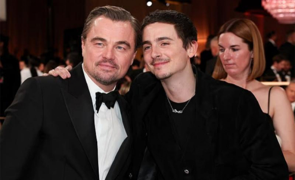 Леонардо Ди Каприо на церемонии вручения премии «Золотой глобус» с лауреатом в номинации «Лучший актёр в комедии или мюзикле» Тимоти Шаламе