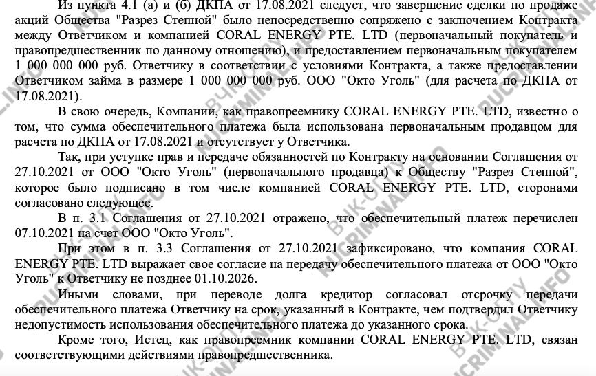 Эти деньги «ОКТО Уголь» использовал для покупки у Гуцериевых угольной компании «Разрез Степной», а затем перевел на разрез обязанности продавца и поставщика угля по договору. Но тут грянула война и санкции, от российского угля полностью отказалась Европа, поэтому за три года покупатель выдал заявки меньше чем на 300 тысяч тонн. тоже перевела договор на аффилированную фирму — BX Energy Limited, и та через суд потребовала от «ОКТО Угля» и «Степного» вернуть деньги и расторгнуть договор. Проблема в том, что у «ОКТО» денег нет — уголь не продается, а долги растут. В счёт многомиллиардного долга перед «Уралсибом» компания может продать «Разрез Степной», и тогда азербайджанским трейдерам свои миллионы никогда не видать.