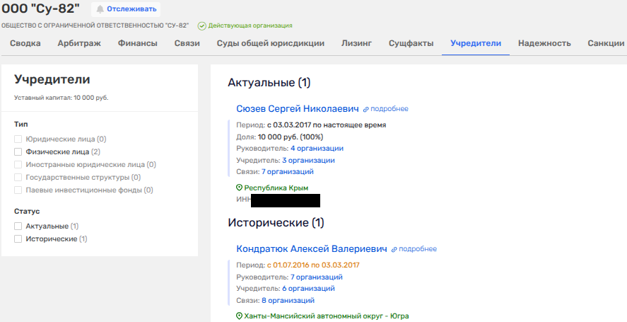 Еще до того, как в ООО «СУ-82» появился Сюзев, компания числилась за Алексеем Валериевичем Кондратюком, который, получал ИНН в Югре.
