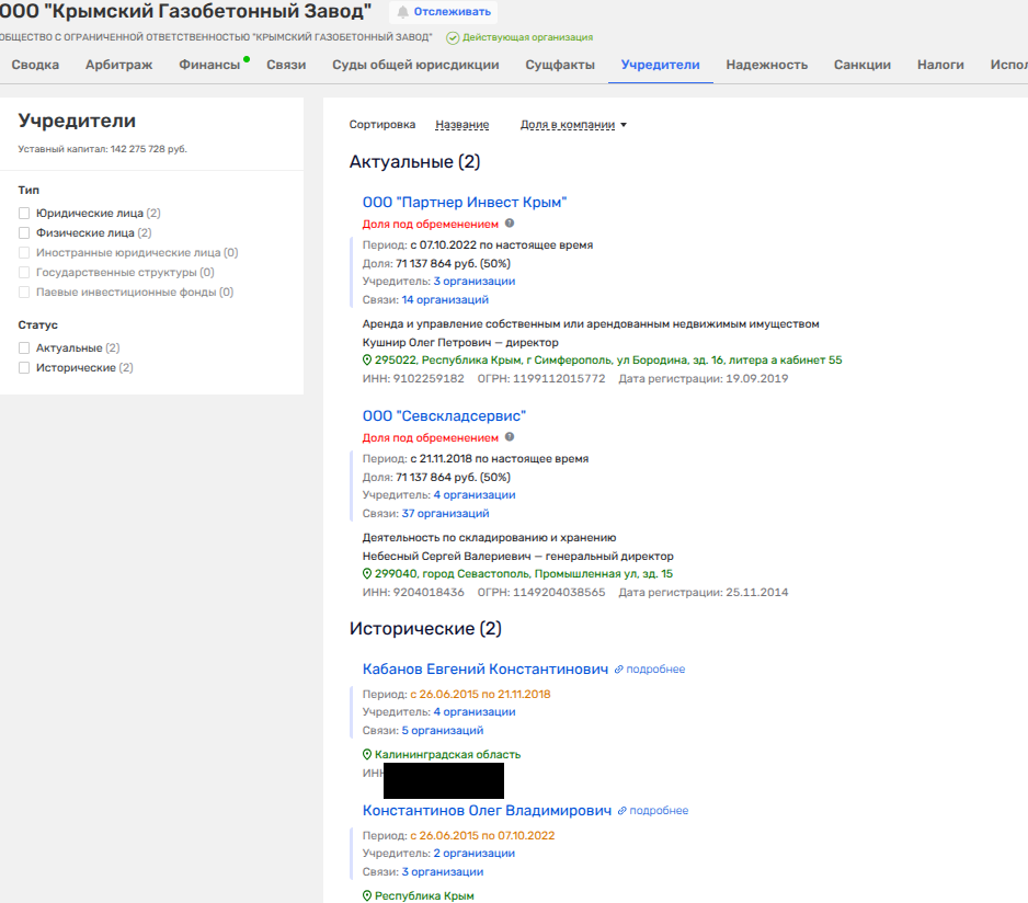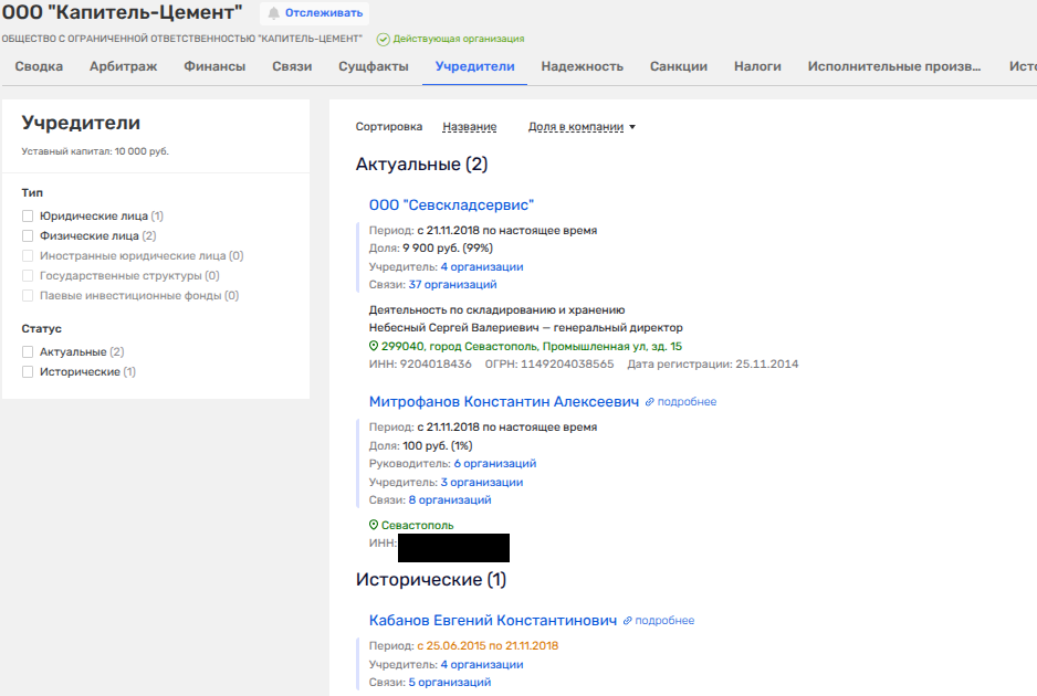 Помимо этого, с отцом экс-чиновника Кабанова Константином Небесный владеет ООО «Севскладсервис». В свою очередь Константин Кабанов имеет общие дела с теми же Константиновыми — членами семьи спикера Госсовета Крыма.